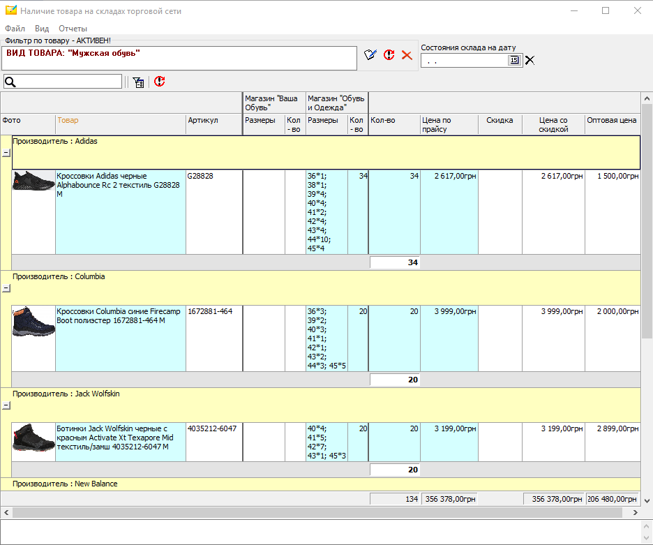 Өлшемді тауар үшін барлық өлшем қатарын бірден енгізуге болады. Тауарға сатып алу бағасын, үстеме бағаны немесе бөлшек сауда бағасын енгізу керек. Накладнойдағы тауарды бірден сауда нүктелері бойынша бөлуге болады - бағдарлама ішкі тасымалдау накладнойларын жасайды.