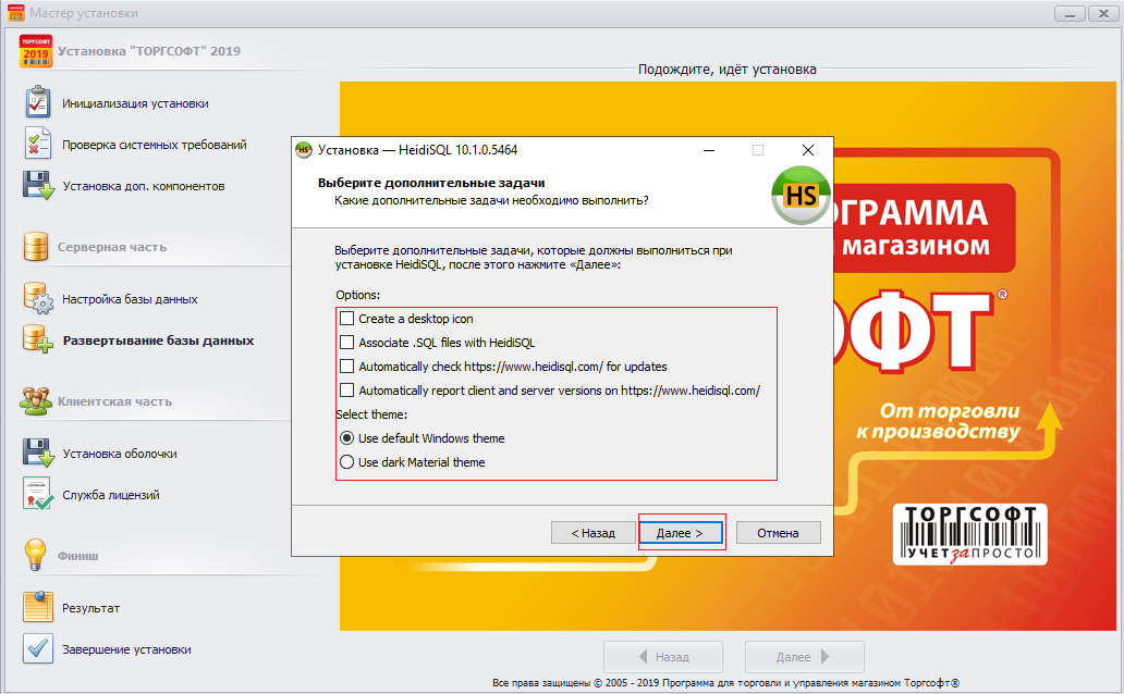 Содан кейін "Әрі қарай" батырмасын басамыз, Дерекқорды орнату сәтіне дейін.