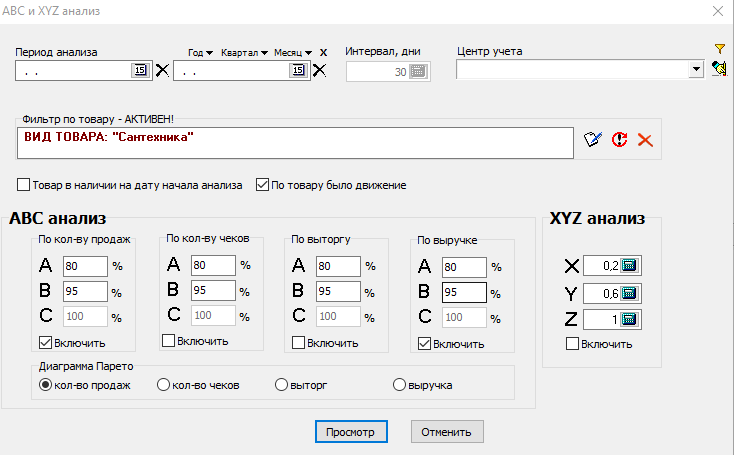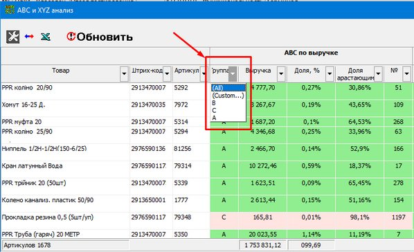 Analiza ABC și XYZ în Torgsoft
