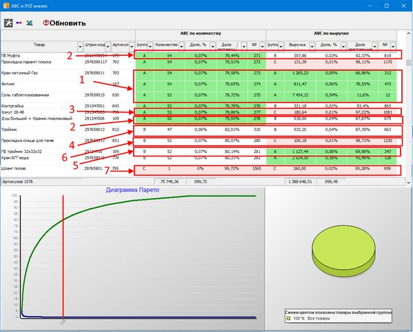 Raportul procentual optim al categoriilor este de 80-95-100 în software-ul de analiză ABC Torgsoft. Dacă este necesar, puteți specifica un alt raport.
