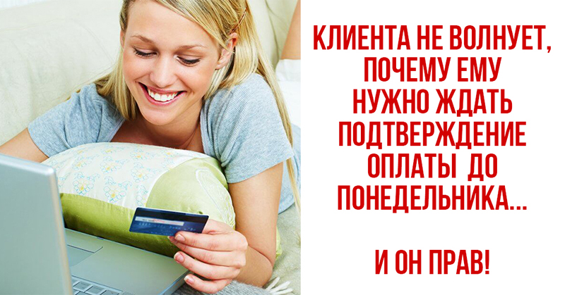 Multe magazine online acceptă plăți pe carduri. În acest caz clientul trebuie să aștepte confirmarea, că plata a fost primită cu succes pe card. Uneori acest lucru încetinește semnificativ procesul.
